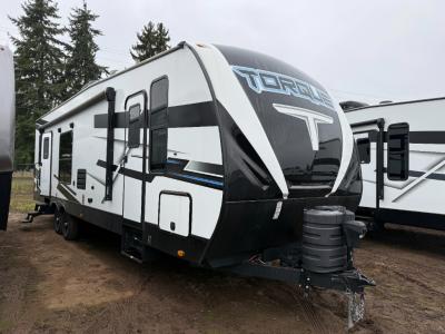 Each model includes Azdel sidewall construction and a wide body design for your favorite ride-on toys. You will love the interior with its culinary kitchen workspace, residential furniture, carpet free slide outs, and pleated night shades. The Torque garage features fuel and oil resistant diamond plate TPO rubberized flooring, a high efficiency 12V fan, and a rear screen for maximum ventilation.