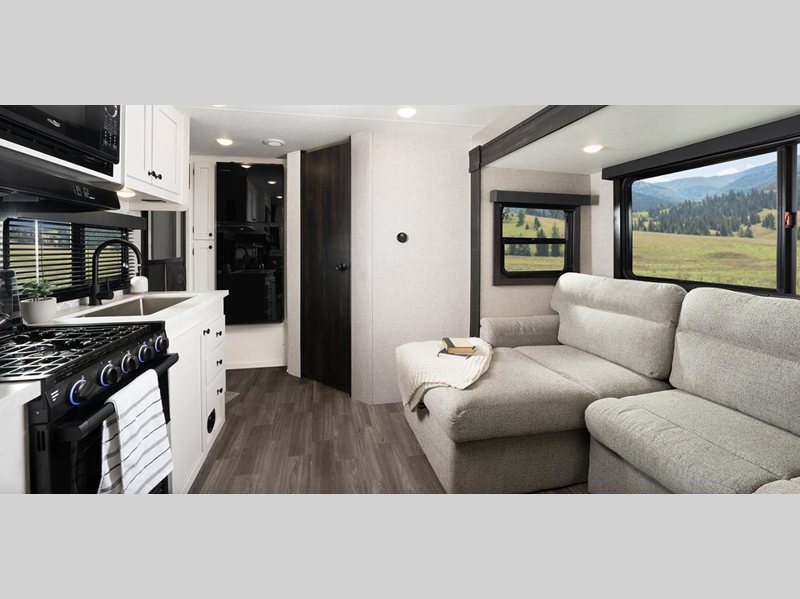 Sleeps 5 Slides 1 Length 27 ft 4 in Ext Width 8 ft 1 in Ext Height 11 ft 1 in Int Height 6 ft 10 in Interior Color Coastal Linen Hitch Weight 485 lbs GVWR 6600 lbs Dry Weight 5120 lbs Cargo Capacity 1480 lbs Fresh Water Capacity 45 gals Grey Water Capacity 29 gals Black Water Capacity 29 gals Tire Size ST205/75R14'D Furnace BTU 35000 btu Available Beds Queen Refrigerator Type 12V Refrigerator Size 10 cu ft Cooktop Burners 3 Number of Awnings 1 LP Tank Capacity 30 lbs Water Heater Capacity 6 gal Water Heater Type Gas/Electric AC BTU 15000 btu TV Info LR Smart HDTV Awning Info 19' Power with LED Lights Axle Count 2 Number of LP Tanks 2 Shower Type Tub/Shower Combo Similar Floorplans