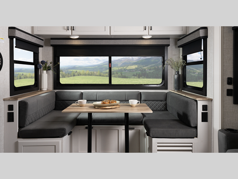 - LED fireplace with 5K BTU electric space heater (select models) (Travel Trailers)