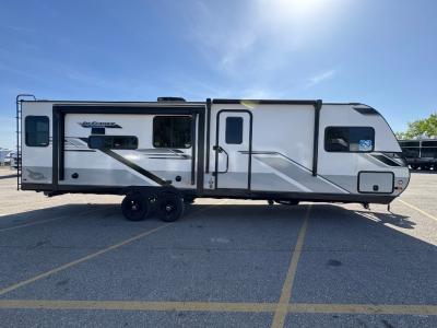 Sleeps 5 Slides 2 Length 33 ft 2 in Ext Width 8 ft Ext Height 10 ft 11 in Int Height 6 ft 6 in Interior Color Dune Gray Hitch Weight 705 lbs GVWR 8850 lbs Dry Weight 6925 lbs Cargo Capacity 1925 lbs Fresh Water Capacity 55 gals Grey Water Capacity 71 gals Black Water Capacity 30.5 gals Tire Size ST225/75R15E Furnace BTU 35000 btu Available Beds Queen Refrigerator Type 12V Refrigerator Size 11 cu ft Cooktop Burners 3 Number of Awnings 2 LP Tank Capacity 20 lbs. Water Heater Type On Demand Tankless AC BTU 13500 btu TV Info LED Smart TV Awning Info 8' and 10' 6" Max-Length Power w/LED Light Axle Count 2 Number of LP Tanks 2 Shower Type Standard Electrical Service 30 amp Solar Wattage 200 watts Similar Travel Trailer Floorplans