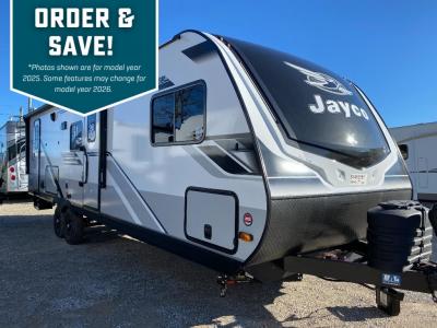 With any Jay Feather travel trailer by Jayco, you will enjoy lightweight towing, convenient exterior amenities, and at-home comforts inside! The Overlander 1 Solar Package included within the Jay Sport Package comes with a 200W solar panel and a 30-amp digital controller so you can enjoy some off-grid camping. There is also a modern graphics package, Solid fold-down step with aluminum tread steps on the main entry doorstep, and Climate Shield 0 -100° F tested weather insulation package that will allow you to camp in various types of climates. The Customer Value Package will make time outdoors easier than ever with a power tongue jack and Automotive-style aluminum rims, plus radial tires with self-adjusting electric brakes. More exterior features include a Keyed-Alike doors, a Magnum Truss roof system, and the list goes on! And we haven't even touched on the interior comforts, like the seamless countertops and Residential vinyl flooring throughout, decorative kitchen backsplash, handcrafted hardwood door/drawer fronts, and multiple USB charging ports to keep you going!