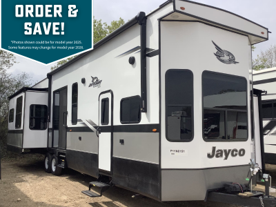 Each Jay Flight Bungalow travel trailer by Jayco features a Magnum Truss roof system, 12 in. I-Class cambered structural steel I-beams, and an insulated and enclosed underbelly for added protection against the elements. You will love the open living space and the atrium-style front wall, along with oversized side windows and hardwood look vinyl flooring. An on-demand tankless water heater will provide endless hot showers, and you're sure to stay comfortable with two A/C units. These travel trailers also include an AM/FM/Bluetooth stereo and marine grade exterior speakers, a power awning with an LED light, an outside shower, plus many more exterior conveniences!