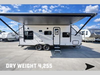 Sleeps 4 Length 25 ft 8 in Ext Width 8 ft Ext Height 10 ft 6 in Int Height 6 ft 9 in Interior Color Country Linen Hitch Weight 460 lbs GVWR 6000 lbs Dry Weight 4260 lbs Cargo Capacity 1740 lbs Fresh Water Capacity 52 gals Grey Water Capacity 39 gals Black Water Capacity 39 gals Tire Size ST205/75R14'D Furnace BTU 25000 btu Available Beds RV Queen Refrigerator Type 12V Refrigerator Size 8 cu ft Cooktop Burners 3 Number of Awnings 1 LP Tank Capacity 20 lbs Water Heater Type On Demand Tankless AC BTU 13500 btu Awning Info 16' Electric with LED Lights Axle Count 2 Number of LP Tanks 2 Shower Type Standard Electrical Service 30 amp Similar Travel Trailer Floorplans