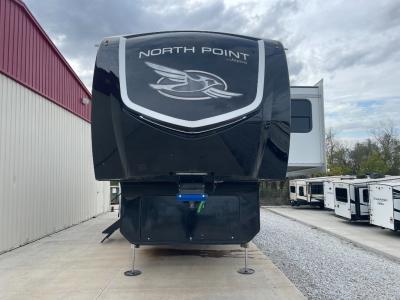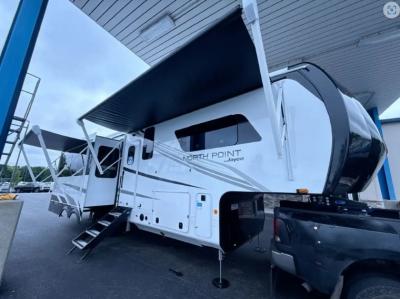 With any North Point fifth wheel by Jayco you begin with a strong foundation with a custom frame, designed and sized specifically to best support each unit. Constructed with Stronghold VBL™ aluminum framed, vacuum bond laminated walls and the Magnum Truss™ XL6™ roof system with an Alpha roof membrane system, which is the strongest tested roof in the industry. The 5-Star Handling package is included with H-rated tires with TPMS, a MORryde rubber pin box, Dexter axles with Nev-R-Adjust brakes, MORryde CRE-3000 rubberized suspension and wet bolt fasteners and bronze bushings. The interior has handcrafted hardwood glazed doors and drawers, vinyl flooring throughout, an integrated under-mount sink in the main bathroom, plus so much more you just have to see one to believe it all!