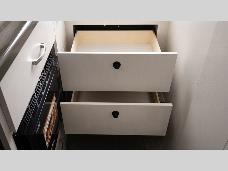 - Under floor storage with pull-out trays (20E)