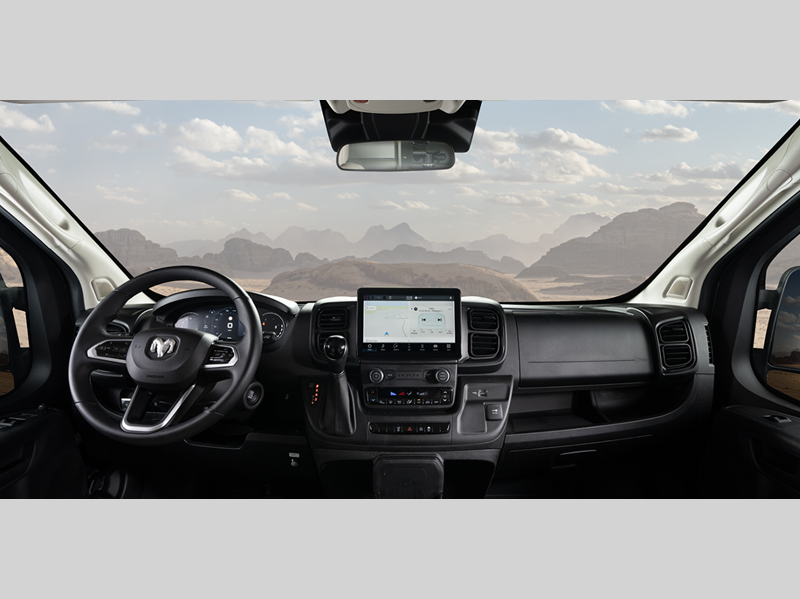 Inside, you'll find Technoform European-style high gloss cabinetry, residential vinyl flooring, and swivel captain's seats for a comfortable driving experience. You will stay powered up with the Onan 2,800W generator and two 12V AGM house batteries, and there is a Thule roof rack to keep your gear secure. The driver will appreciate the Uconnect 5 NAV infotainment center and the ParkView rear backup camera for easy maneuvering.