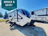 Sleeps 4 Slides 2 Length 33 ft 7 in Ext Height 11 ft 5 in Interior Color Driftwood Hitch Weight 990 lbs Dry Weight 7875 lbs Cargo Capacity 1915 lbs Fresh Water Capacity 54 gals Grey Water Capacity 76 gals Black Water Capacity 38 gals Tire Size ST225/75R15E Furnace BTU 30000 btu Available Beds King Refrigerator Type 12V Refrigerator Size 10.4 cu ft Cooktop Burners 3 Shower Size 36" x 30" Number of Awnings 2 LP Tank Capacity 20 lbs Water Heater Type Girard Tankless On Demand AC BTU 15000 btu TV Info LR LED HDTV Awning Info 10' Electric with Gas Strut Arm Axle Count 2 Number of LP Tanks 2 Shower Type Standard Electrical Service 50 amp Similar Floorplans