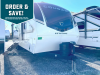 Sleeps 5 Slides 2 Length 34 ft 9 in Ext Height 11 ft 5 in Interior Color Driftwood Hitch Weight 955 lbs Dry Weight 7715 lbs Cargo Capacity 1785 lbs Fresh Water Capacity 54 gals Grey Water Capacity 60 gals Black Water Capacity 30 gals Tire Size ST225/75R15E Furnace BTU 30000 btu Available Beds Queen Refrigerator Type 12V Refrigerator Size 10.4 cu ft Cooktop Burners 3 Number of Awnings 1 LP Tank Capacity 20 lbs Water Heater Type Girard Tankless On Demand AC BTU 15000 btu TV Info LR LED HDTV Awning Info 19' Electric with Gas Strut Arm Axle Count 2 Number of LP Tanks 2 Shower Type Radius Electrical Service 50 amp Similar Floorplans