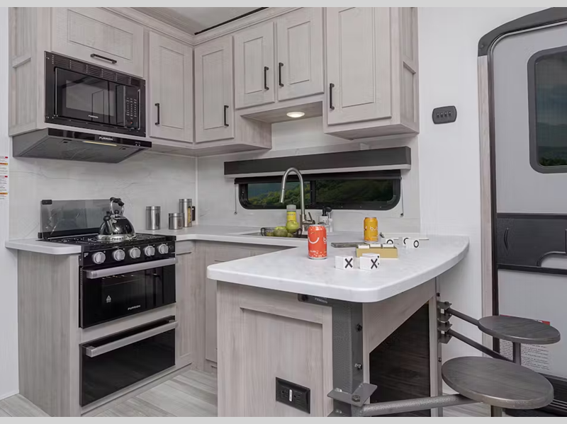 - Furrion® 3-burner gas range and stove w/ low profile hood vent