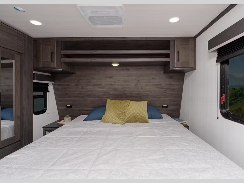 Sleeps 5 Length 32 ft Ext Width 8 ft 4 in Hitch Weight 2700 lbs GVWR 14000 lbs Dry Weight 9100 lbs Cargo Capacity 4905 lbs Fresh Water Capacity 94 gals Grey Water Capacity 88 gals Black Water Capacity 44 gals Furnace BTU 35000 btu Fuel Capacity 30 gals Number Of Bunks 1 Available Beds Queen Refrigerator Type 12V Refrigerator Size 10 cu ft Number of Awnings 1 Axle Weight 2000 lbs Garage Size 15 ft 8 in LP Tank Capacity 30 lbs Water Heater Type Girard On Demand AC BTU 15000 btu Awning Info 20' Electric with Adjustable Arms, Auto Dump, LED Light Strip Axle Count 2 Number of LP Tanks 2 Shower Type Standard Electrical Service 50 amp Similar Floorplans