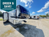 Sleeps 5 Slides 3 Length 37 ft 4 in Ext Height 13 ft 4 in Interior Color Arlington, Kingston Hitch Weight 2580 lbs Dry Weight 12217 lbs Cargo Capacity 4363 lbs Fresh Water Capacity 75 gals Grey Water Capacity 87 gals Black Water Capacity 48 gals Tire Size ST235/80R16G Furnace BTU 35000 btu Available Beds King Refrigerator Type GE Energy Star Residential with Ice Maker Refrigerator Size 18 cu ft Cooktop Burners 3 Shower Size 48" x 30" Number of Awnings 2 Axle Weight 7000 lbs LP Tank Capacity 30 lbs Water Heater Type On Demand AC BTU 15000 btu TV Info LR 50" LED Smart TV Awning Info 11' and 18' Electric with LED Lights Axle Count 2 Washer/Dryer Available Yes Number of LP Tanks 2 Shower Type Shower w/Seat Electrical Service 50 amp Similar Floorplans