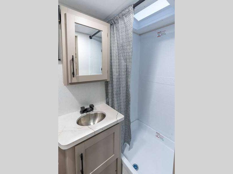 Sleeps 3 Slides 1 Length 24 ft 1 in Ext Width 8 ft Ext Height 10 ft 10 in Int Height 6 ft 6 in Interior Color Chocolate, Mink Hitch Weight 490 lbs GVWR 6500 lbs Dry Weight 4750 lbs Cargo Capacity 1750 lbs Fresh Water Capacity 45 gals Grey Water Capacity 32 gals Black Water Capacity 32 gals Tire Size 15" Furnace BTU 30000 btu Available Beds Queen Refrigerator Type 12V Refrigerator Size 10 cu ft Cooktop Burners 3 Shower Size 34" X 34" Number of Awnings 1 Axle Weight 4260 lbs LP Tank Capacity 20 lbs Water Heater Type Tankless AC BTU 13500 btu Cargo Deck Size 0 ft Awning Info 16' Power w/LED Lighting Axle Count 2 Number of LP Tanks 2 Shower Type Radius Electrical Service 30 amp Similar Floorplans