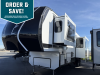Sleeps 4 Slides 3 Length 37 ft 11 in Ext Width 8 ft Ext Height 12 ft 11 in Interior Color Mink, Pebble Hitch Weight 2160 lbs GVWR 14500 lbs Dry Weight 12420 lbs Cargo Capacity 2080 lbs Fresh Water Capacity 76 gals Grey Water Capacity 90 gals Black Water Capacity 50 gals Tire Size 16" Furnace BTU 35000 btu Available Beds King Refrigerator Type Residential Refrigerator Size 18 cu ft Convection Cooking Yes Cooktop Burners 4 Number of Awnings 1 Axle Weight 10260 lbs LP Tank Capacity 30 lbs Water Heater Type On Demand Tankless AC BTU 15000 btu TV Info LR 43" Smart LED TV Awning Info 16' Power w/LED Light Strip Axle Count 2 Washer/Dryer Available Yes Number of LP Tanks 2 Shower Type Shower w/Seat Electrical Service 50 amp Similar Floorplans