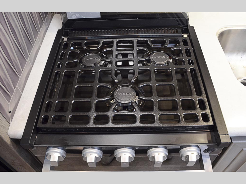 The durable construction materials continue on with a fully welded, thick-wall aluminum frame, corona treated fiberglass, and an aerodynamic front fiberglass cap. The MORryde CRE-3000 suspension and MORryde RPB pin box will make towing easier than ever, and the exterior convenience center is rear view camera ready if you want to add that option. There are solid surface kitchen countertops inside, along with slow-rise night shades with magnetic catches, a glass shower enclosure, and many more comforts.
