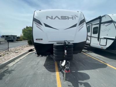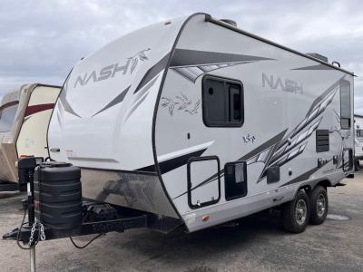 With any Nash travel trailer by Northwood, you can be sure you're getting a durable RV made to last thanks to the fully welded, thick-wall aluminum frame construction and Northwood built Ironhorse chassis. There are also thermal pane windows, Corona treated fiberglass, and all-conditions/four seasons insulation so you can camp in any weather! A pass-through storage with an LED light will let you easily store camp gear and the SolX 4 - 400-Watt Solar Package will provide some off-grid capabilities. Head inside to enjoy the cathedral arched ceiling, along with slow rise night shades, a Northwood TruRest mattress, an AM/FM stereo with Bluetooth, and many more at-home comforts. The optional Off the Grid Package can be added to any Nash model and includes custom OTG graphics, a SolX 6 Solar Package, a rear LED light bar, off-road tires, and more upgraded features!