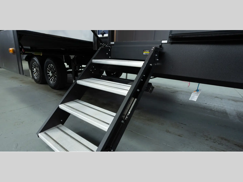 Each luxurious model features real wood cabinet doors, heat rated solid surface countertops throughout, blackout roller shades, and a king-size bed to provide the highest level of owner satisfaction. These fifth wheels also include an electric awning with LED lights outside, as well one-touch auto leveling, doggy d-ring, and a labeled universal docking center to have you set up to camp in no-time!