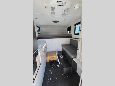 You can explore in complete comfort with this truck camper on your back! There is a comfortable 45" x 80" bunk up front to sleep on, or you can choose the optional 80" x 81" pull-out North/South bed. A two person dinette with a bench seat and fold-away table provides a place to enjoy your meal after it's been prepared on the two burner electric cooktop. There is also a 12V refrigerator that comes standard and an optional microwave oven if you want meals on the go. The portable cooktop can also be taken outside for added convenience, and the dinette can be converted for additional sleeping space for a guest. You can even add an optional commode to make camping trips that much easier!