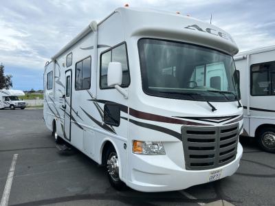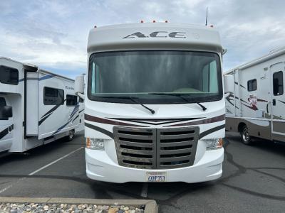 The A.C.E Class A gas motorhome by Thor Motor Coach is the pet-friendly and family-friendly coach you've been searching for! Your excursions will be powered by a 7.3L Triton V8 engine with 350 HP that sits on a durable Ford F-53 chassis, and the HD-MAX exterior with a graphics package and partial paint is sure to be show-stopping!