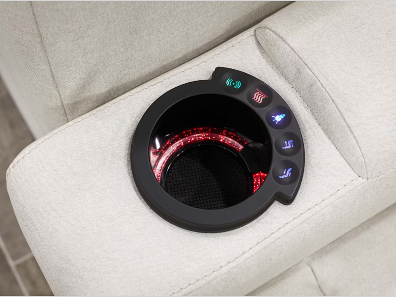 - Leatherette Power Reclining Home Theater Seating with Footrests, UBS Charging Ports & Stainless Steel Cup Holders
