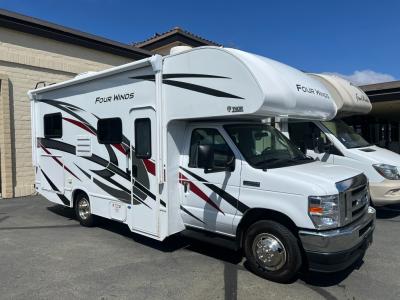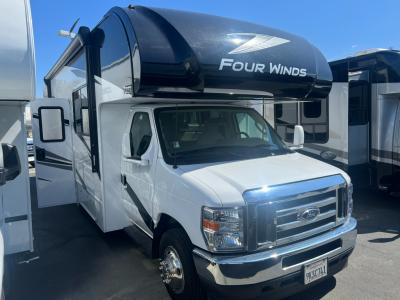 The Thor Motor Coach Four Winds Class C gas motorhomes are perfect coaches for a weekend get-away, a long-vacation, or even a month long trip! The Ford E-Series chassis gives you 325HP with 450 lb.-ft. of torque, plus you will have an 8,000 lb. trailer hitch to bring along your commuter car or trailer with off-road toys.