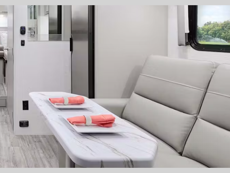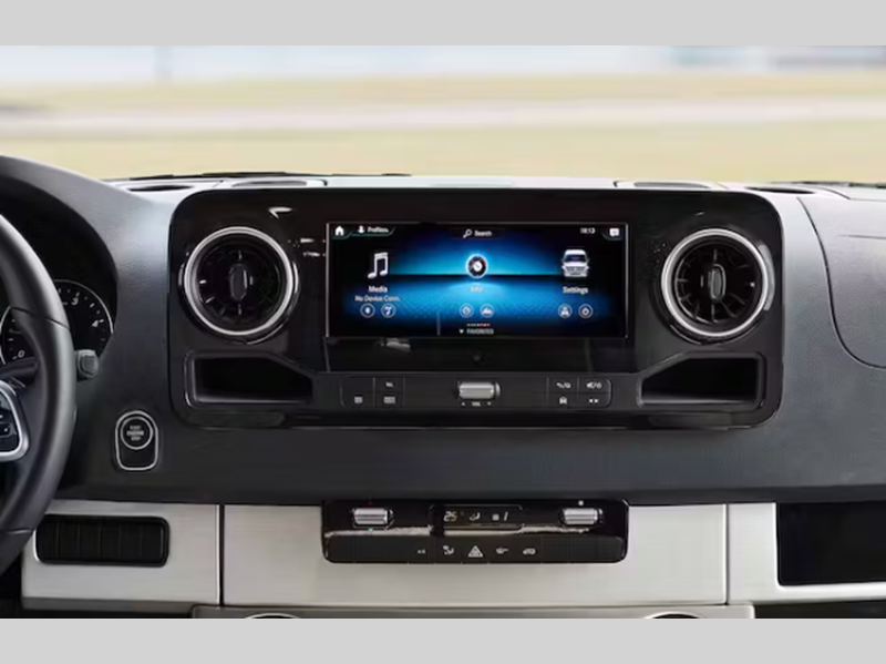 The driver will love every journey since there is a Mercedes-Benz multimedia dash radio with Bluetooth, navigation & SiriusXM, plus heated electric captain's seats for all-around comfort. You will be able to set up camp in no-time with the electric stabilizing jack system, and the lighted rotocast storage compartments include lights to easily unload your gear. Inside, you'll feel right at home with a 7' interior ceiling height, residential vinyl flooring, pressed laminate countertops, and full bath amenities!