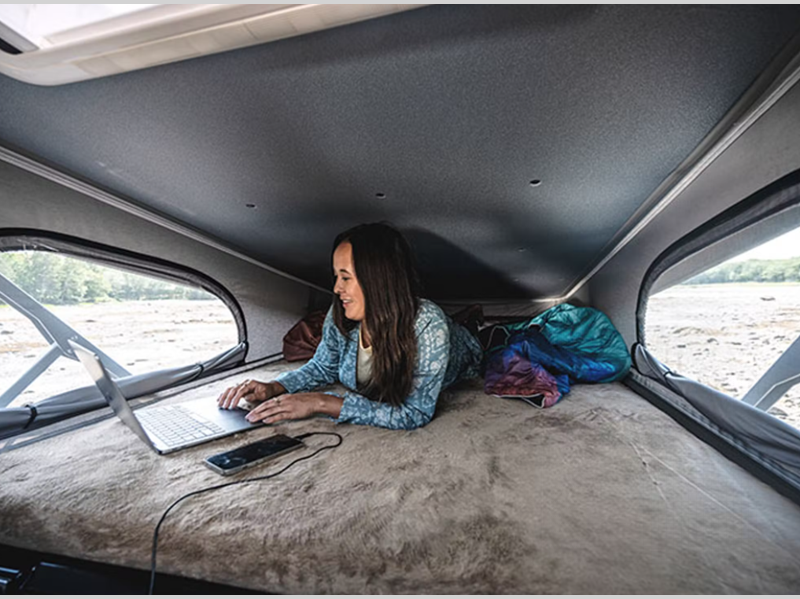 - Retractable Roof Top with SkyBunk® Sleeping Area with flex 190w solar panel and Cabinet A/C (Optional)