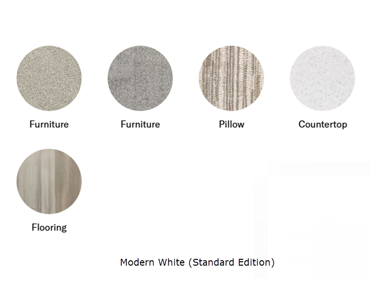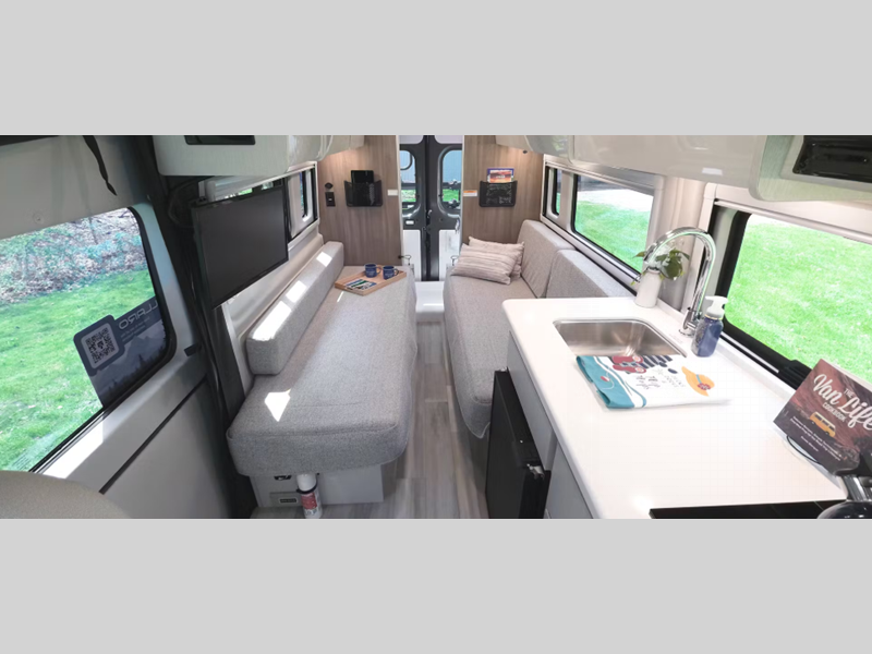 - Standard Edition - Thule® Lateral Arm Power Patio Awning with Integrated LED Lighting/Thule® Roof Rack/Leatherette, Swivel, Captain's Chairs/Cockpit Floor Mat, Euro-Style Upper Cabinet Doors/Cassette Shades/Solid Surface Countertops with Undermount Sink & Sink Cover/Kitchen Power Vent/Bath Mat/24" Smart TV in Living Area/Winegard Connect 2.0 WiFi, 4G, TV Antenna/Satellite Prep (optional)