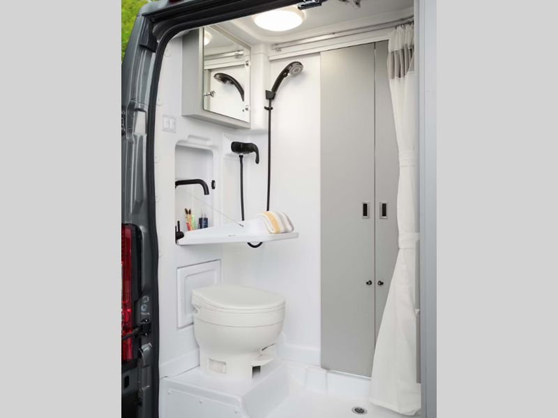 Sleeps 2 Length 21 ft 1 in Ext Width 6 ft 9 in Ext Height 9 ft 5 in Int Height 6 ft 3 in Interior Color Modern White Exterior Color Full Body Paint; Silver, White. Ceramic Gray Hitch Weight 5000 lbs GVWR 9350 lbs Fresh Water Capacity 27 gals Grey Water Capacity 13 gals Black Water Capacity 13.5 gals Furnace BTU 14300 btu Generator 2800 Gas Fuel Type Gasoline Engine 3.6L Pentastar V6 Chassis RAM ProMaster 3500 XT Horsepower 276 hp Fuel Capacity 24 gals Wheelbase 159 in Available Beds Two Twin Torque 250 ft-lb Refrigerator Type Double Door Cooktop Burners 1 Number of Awnings 1 LP Tank Capacity 24.78 lbs. Water Heater Capacity 2.64 gal Water Heater Type Combi Eco LP AC BTU 11000 btu Awning Info 12' Thule Lateral Arm Power with Integrated LED Lighting Gross Combined Weight 11500 lbs Shower Type Wet/Bath Shower Electrical Service 30 amp Similar Floorplans