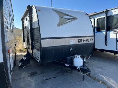 The affordable Go Play travel trailers by Wayfinder RV are ready to meet your camping needs! You will appreciate the durable Magnum Roof system, plus each model is constructed with black front diamond plate protection, 5/8" main floor decking, and self-adjusting electric brakes with E-Z Lube axles for smooth towing. The 81" interior height means you won't feel cramped when relaxing with friends and family, and the residential vinyl flooring throughout is easy to clean, which will be perfect if you're camping with little ones or pets. These models also include an AM/FM/Bluetooth radio with indoor/outdoor speakers, a digital TV antenna, plus a 13,500 BTU roof mounted A/C to keep you cool on those hot summer months.