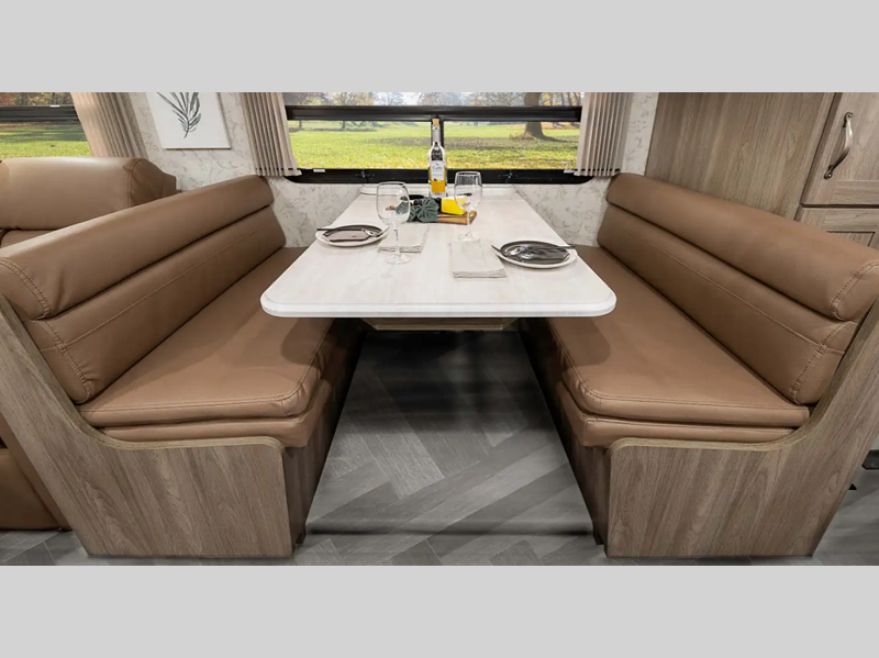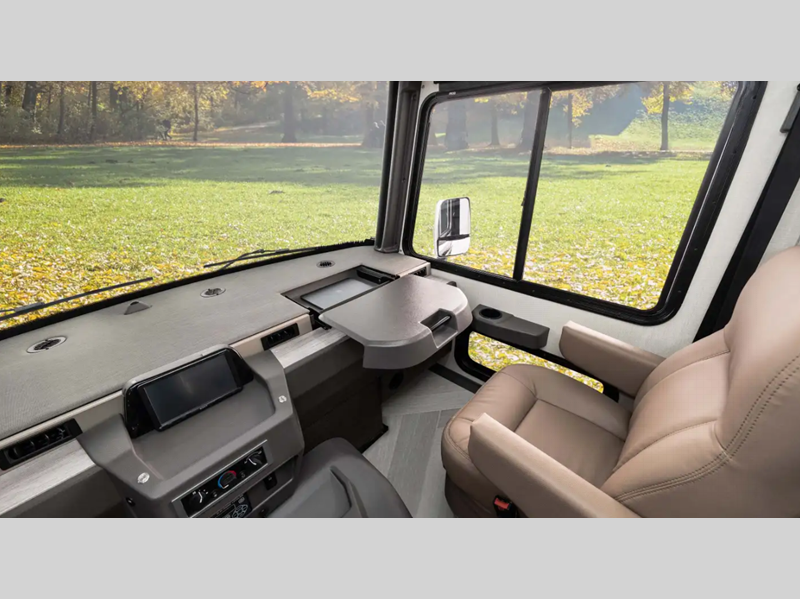 Each model includes an upgraded galley with Corian countertops and ceramic tile backsplash, a king-size bed with storage below, plus sleek dual-pane frameless tinted windows. You will be in control of your coach's functions with the Winnebago Control command center with a 7" touchscreen and available app, and the Winegard 4G LTE Wi-Fi router included means you can stay connected while away from home. The conveniences continue outdoors with a KeyOne lock system, premium full-body paint and protective front mask, plus lighted storage compartments and a power awning with LED lighting!