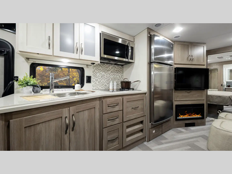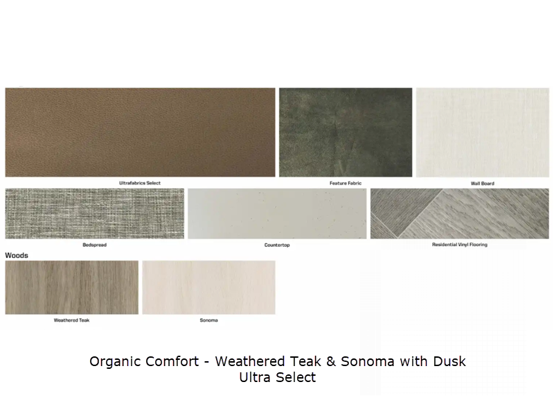 Sleeps 5 Slides 2 Length 35 ft 6 in Ext Width 8 ft 6 in Ext Height 12 ft 1 in Int Height 6 ft 10 in Interior Color Organic Comfort Dark, Organic Comfort Light, Bohemian Oasis Exterior Color Full-Body Paint; Silvermist, Wedgewood ll, Steel Grey, Night Sky Hitch Weight 5000 lbs GVWR 22000 lbs Fresh Water Capacity 75 gals Grey Water Capacity 57 gals Black Water Capacity 48 gals Tire Size 22.5" Furnace BTU 40000 btu Generator 5,500-Watt Cummins Onan Marquis Gold Fuel Type Gas Engine 7.3L V8 Chassis Ford F-53 Fuel Capacity 80 gals Wheelbase 228 in Available Beds King Refrigerator Type Stainless Steel Residential with Ice Maker and Water Dispenser Convection Cooking Yes Cooktop Burners 2 Shower Size 34" x 34" Number of Awnings 1 Axle Weight Front 8000 lbs Axle Weight Rear 15000 lbs LP Tank Capacity 76.14 lbs Water Heater Capacity 10 gal Water Heater Type 110V/LP AC BTU 28500 btu Basement Storage 122 cu. ft. TV Info LR 50" HDTV, BR 32" HDTV, Ext. 32" HDTV Awning Info 19' Power w/LED Lighting Washer/Dryer Available Yes Gross Combined Weight 26000 lbs Shower Type Radius Electrical Service 50 amp Similar Floorplans
