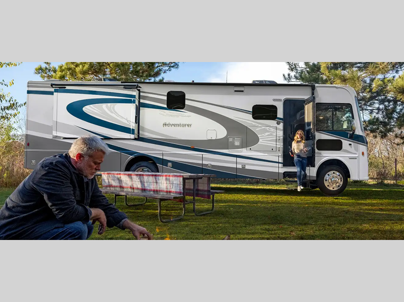 Travel in comfort and style with the Adventurer Class A gas motorhome by Winnebago!