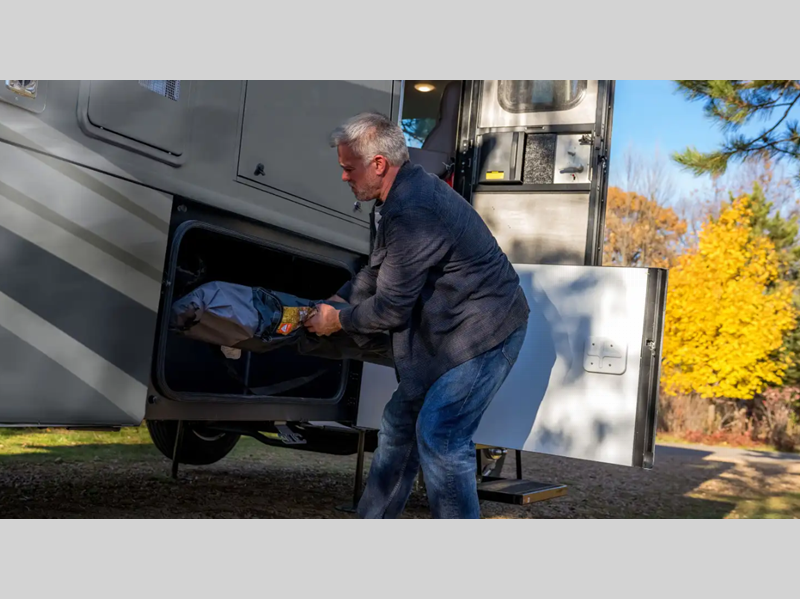 Sleeps 5 Slides 3 Length 37 ft 3 in Ext Width 8 ft 6 in Ext Height 12 ft 4 in Int Height 7 ft 1 in Interior Color Organic Comfort Dark, Organic Comfort Light, Bohemian Oasis Exterior Color Full-Body Paint; Silvermist, Wedgewood ll, Steel Grey, Night Sky Hitch Weight 5000 lbs GVWR 24000 lbs Fresh Water Capacity 93 gals Grey Water Capacity 83 gals Black Water Capacity 75 gals Tire Size 22.5" Furnace BTU 40000 btu Generator 5,500-Watt Cummins Onan Marquis Gold Fuel Type Gas Engine 7.3L V8 Chassis Ford F53 Fuel Capacity 80 gals Wheelbase 242 in Available Beds King Refrigerator Type Stainless Steel Residential with Ice Maker and Water Dispenser Convection Cooking Yes Cooktop Burners 2 Shower Size 30" x 36" Number of Awnings 1 Axle Weight Front 9000 lbs Axle Weight Rear 15000 lbs LP Tank Capacity 76.14 lbs Water Heater Capacity 10 gal Water Heater Type 110V/LP AC BTU 28500 btu Basement Storage 141 cu. ft. TV Info BR 32" HDTV, Ext. 32" HDTV Awning Info 19' Power w/LED Lighting Washer/Dryer Available Yes Gross Combined Weight 30000 lbs Shower Type Standard Electrical Service 50 amp Similar Floorplans