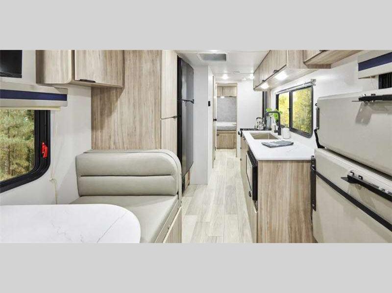 Sleeps 3 Slides 1 Length 23 ft 11 in Ext Width 7 ft Ext Height 10 ft 6 in Int Height 6 ft 4 in Interior Color Santorini Hitch Weight 432 lbs GVWR 6000 lbs Dry Weight 4424 lbs Fresh Water Capacity 31 gals Grey Water Capacity 25 gals Black Water Capacity 25 gals Tire Size 235/75R15C Furnace BTU 18000 btu Available Beds RV Queen Refrigerator Type 12 Volt Refrigerator Size 10.3 cu ft Cooktop Burners 2 Shower Size 30" x 36" Number of Awnings 1 Axle Weight 3000 lbs LP Tank Capacity 20 lbs. Water Heater Capacity 6 gal Water Heater Type Gas/Electric DSI AC BTU 13500 btu Awning Info 16' Power w/ LED Lights Axle Count 2 Number of LP Tanks 1 Shower Type Standard Similar Floorplans