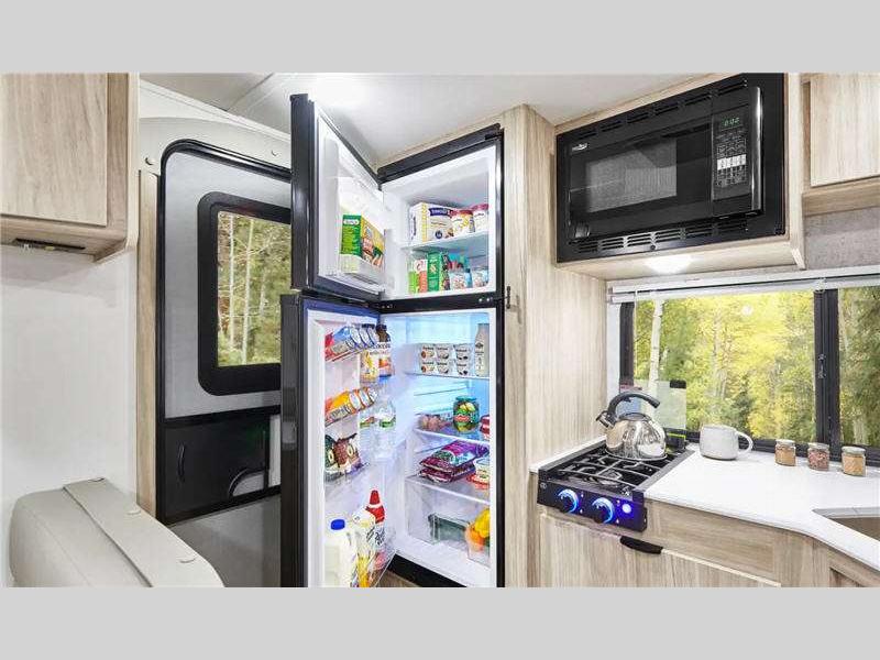With a choice of floorplan layout, you will enjoy plenty of sleeping space, ample storage both inside and out, and full kitchen and bath amenities including a large shower to make each camping trip enjoyable. You even have the choice of the standard 10 cu. ft. RV refrigerator, or optional 8 cu. ft. gas/electric refrigerator if you like.