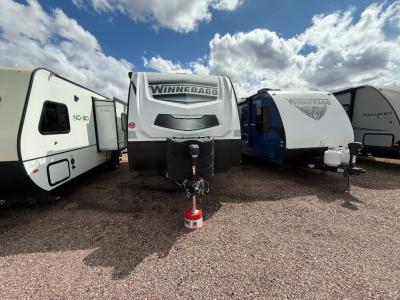 Start out on your boundless journey in one of these Winnebago Micro Minnie travel trailers! Towing is made simple with the 7' width to keep your Micro Minnie in your rear-view mirror. They don't lack in features either although they are compact in size. The spacious galley including a sink, refrigerator, a cooktop, and even a convection microwave oven allows you to cook without compromise. You will not only enjoy the entertainment found indoors with a Smart TV, a JBL premium sound system and Aura Cube high performance mechless media center, but outdoors you will also enjoy the JBL premium speakers and a power awning with LED lighting. Each model also comes with flexible exterior storage to make packing quick and easy, a 200-watt solar panel for off-grid camping, and Dexter TORFLEX torsion stub axles for smooth towing!