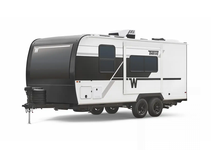 The all-new Thrive travel trailer by Winnebago brings glamping to a whole new level! Some of the stand-out features you'll enjoy include a frameless front window, a queen-sized bed, fiberglass countertops and custom-built furniture!