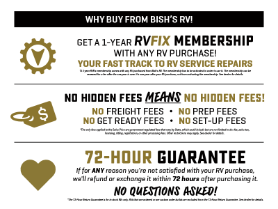 Bish's RV strives to ensure all pricing, images, and information contained on this website is accurate. Despite our efforts, errors do occur which can include but are not limited to typos, pricing and payments entry errors, inaccurate detailed information, or technical mistakes. Bish’s RV is not responsible for any such errors and reserves the right to correct them at any time. Please verify all information, pricing, payments, photos, etc., with a Bish's RV team member by calling us or by visiting us at the dealership. Stock photos may not represent the actual unit in stock. See dealer for details.